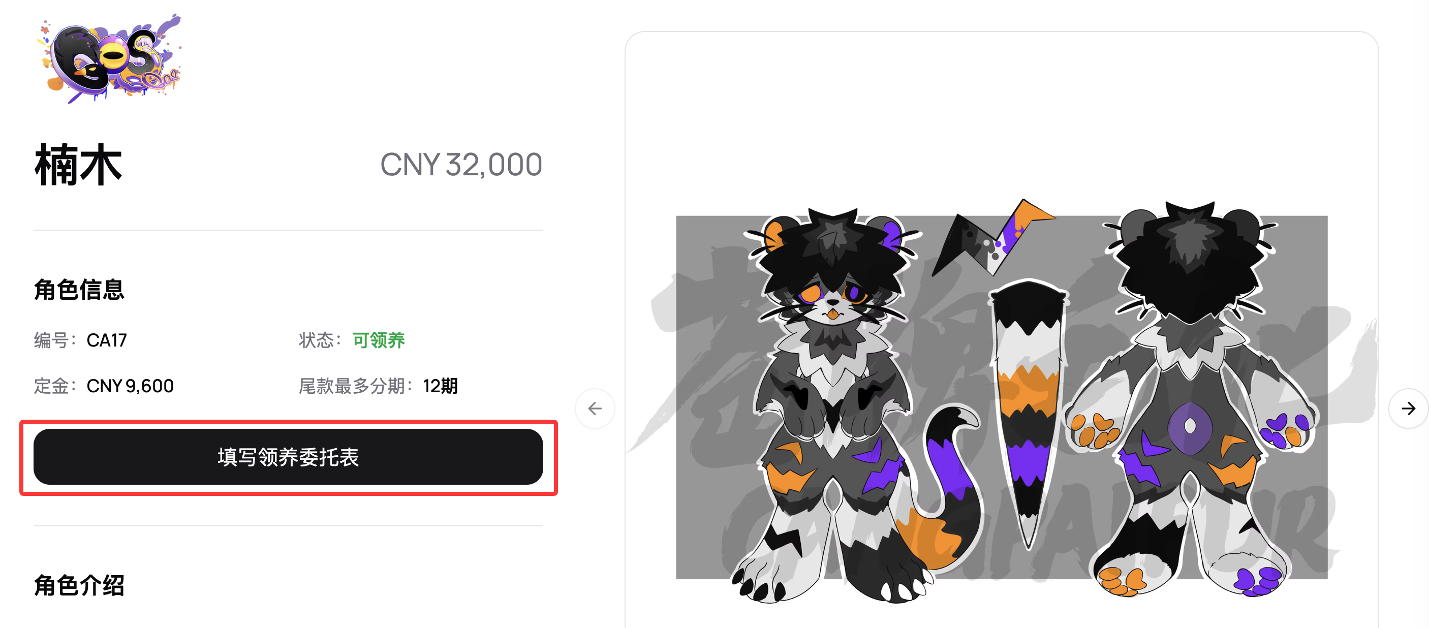 第四步:浏览完全部角色信息后如果想要领养,则点击「填写领养委托表」 ➡